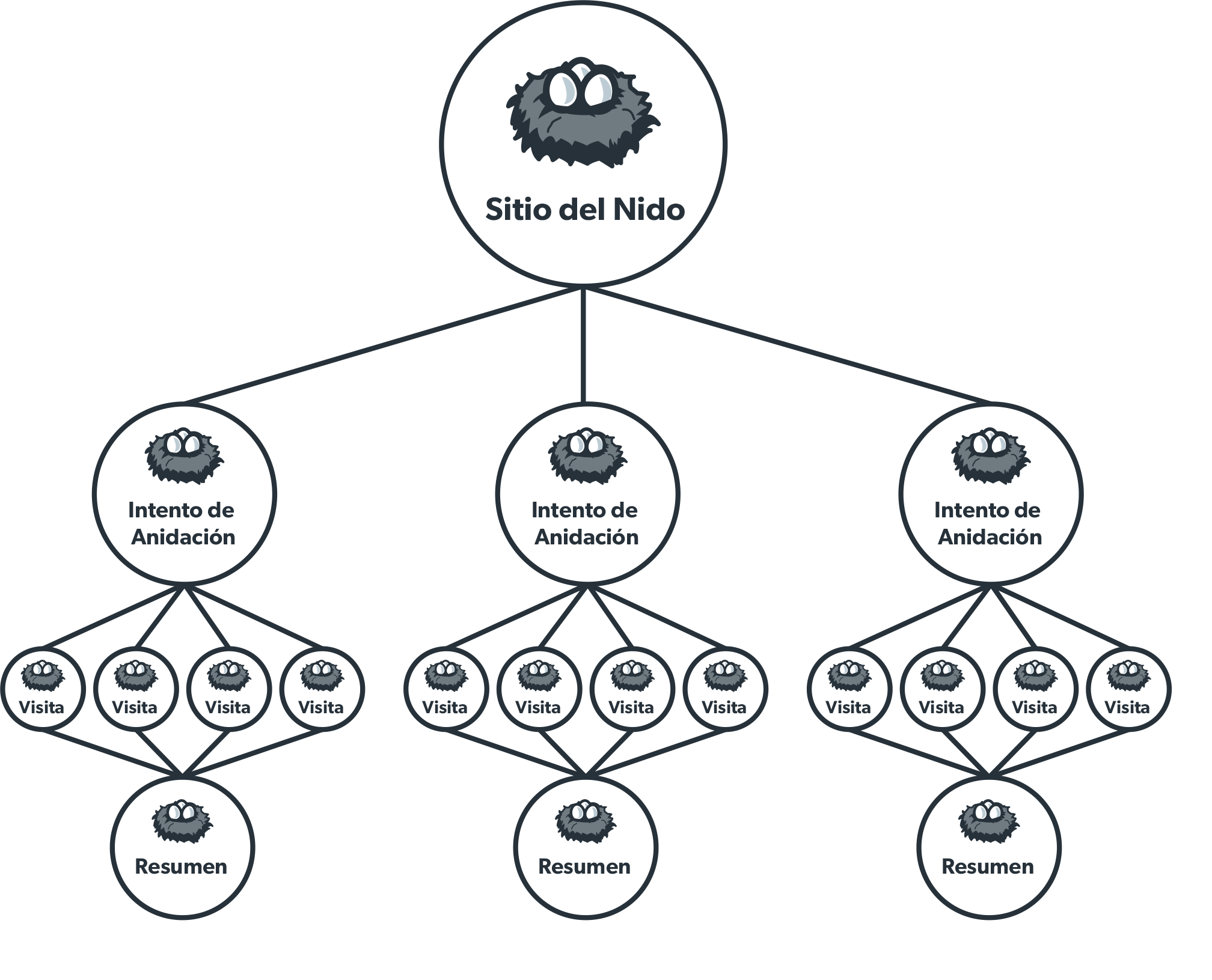 Cada vez que un nido alcanza un punto final (ya sea con o sin éxito), se debe resumir y concluir un ciclo de anidación.