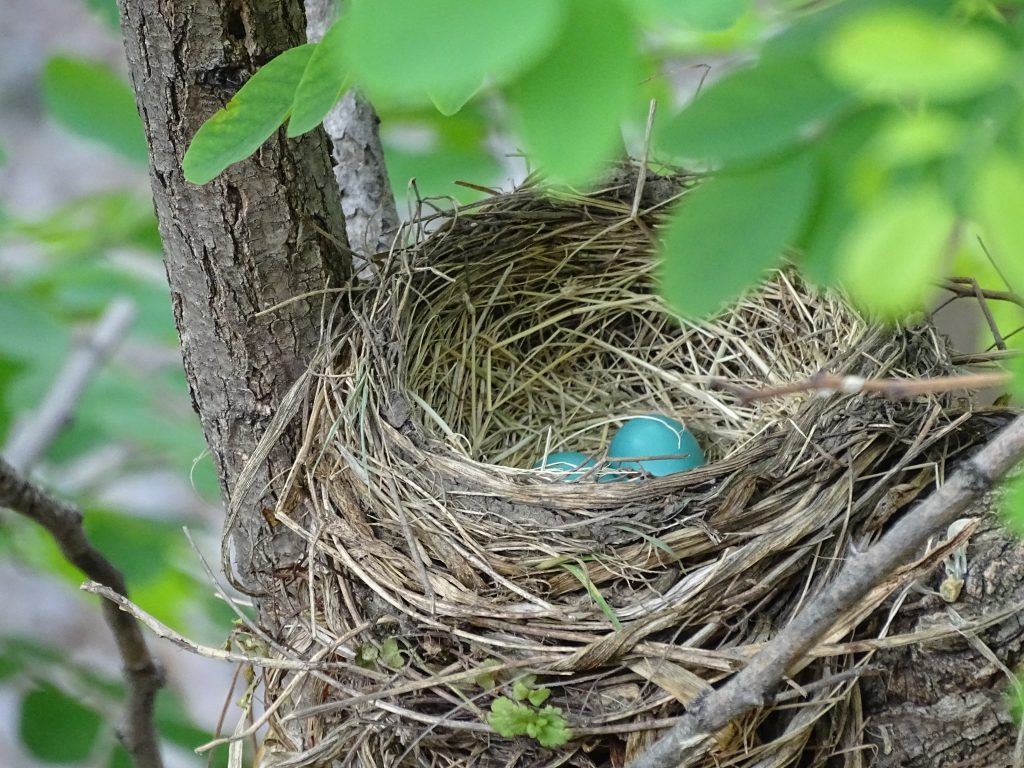- The robin’s nest is an open cup of grass and twigs held together with a thick layer of mud and lined with fine dry grass.