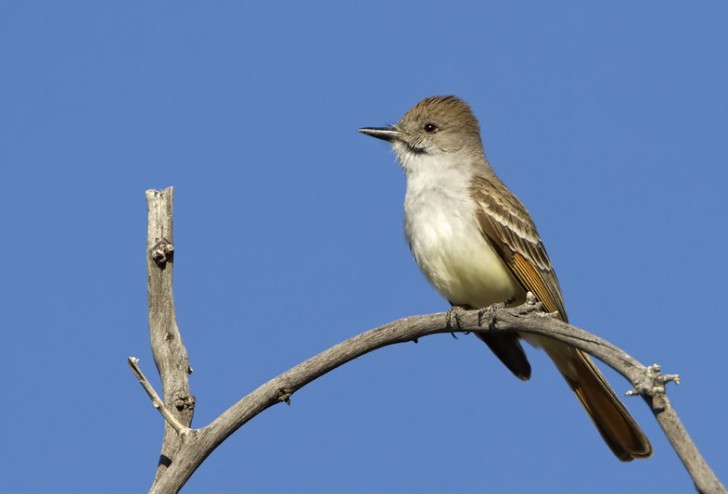 - The Ash-throated Flycatcher frequently uses human-made structures for nesting. It readily uses nest boxes, as well as pipes, fence posts, ledges under eaves or porches, and even in clothes hanging on a clothesline.