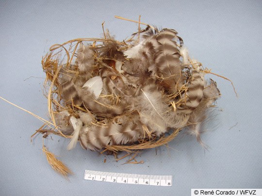 • During egg-laying and incubation, the male brings feathers with which to line the nest.